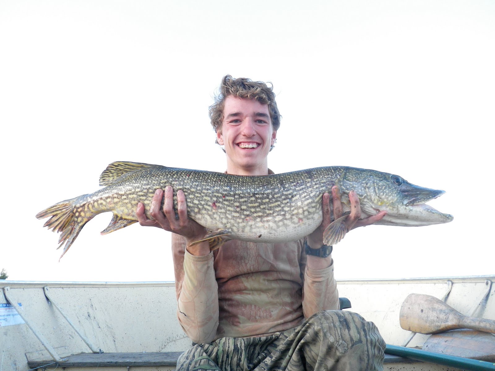 Travis’ brother Carson has been up as well right now and he was out at the beginning of the month on Parker fishing solo when he single handedly hooked, netted, and documented a 42.5” Northern Pike. What a monster catch. I might be most impressed by his photo skills in the boat while wrestling the fish.