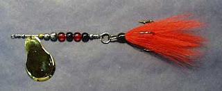 They have five different lures to pick from with the ability to customize your lure’s components with your trusted colors. My personal favorites were the white-tailed “Maverick” (above) and the Red-tailed “Chopper” (below) which outperformed my Mepps on more than one occasion. Also check out the three-bladed “Trippler”. It looks wild, but yielded several nice-sized fish.
