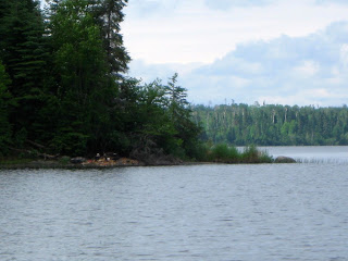 When looking out onto Parker Lake from the main lodge you will commonly see several on the first point to the left.  This is not by chance.  These birds may or may not be used to finding some fish scraps out on those rocks.  Here is the view I’m talking about….