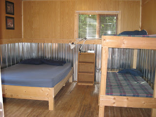 I know you are asking yourself, “Is that a queen sized bed I see, with a bunk bed to the right?” You betcha! We are excited about these new rooms because it provides better accommodations for couples and families. Complete with bowling alley flooring. Told ya it was kinda fancy pants.