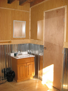 This is the new sink and mirror. We went with a hotel type set up where the sink is outside of the bathroom. Behind that closed door you have a very energy efficient toilet and a lovely shower.