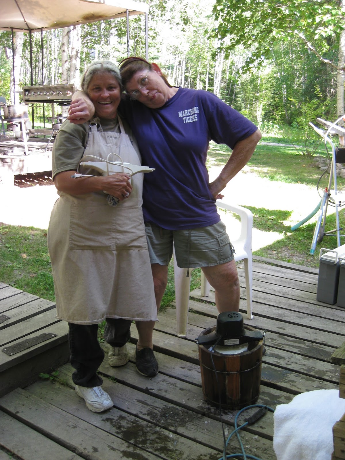 Travis and I have a hand-crank homemade ice-cream maker back in Illinois, but lucky for everyone involved these ladies had the foresight to bring a motorized ice-cream maker to the lodge. MUUUUCHHHHHH easier. Believe me, I’ve hand-cranked my fair share of this homemade creamy cool deliciousness over the years.
