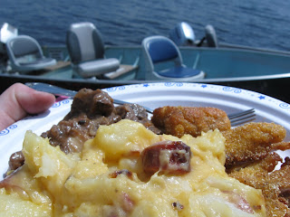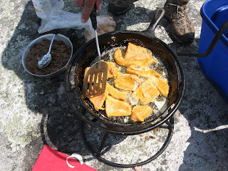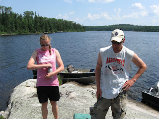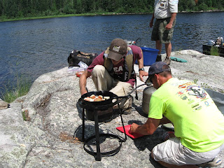 I wanted to share a bunch of pictures with everyone from the incredible shore lunch which took place last week. We have a father/son duo that have become known around Eagle Falls Lodge for their annual shore lunch extravaganza. They are nice enough to plan it around our daily chores, so we usually try to make an appearance.