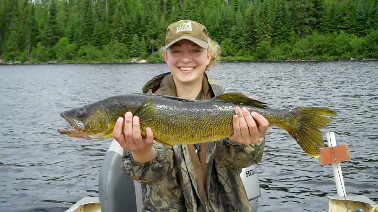 This week my sister Whitney broke the stalemate atop the walleye leaderboard with a massive 28″ fish! The exciting thing about this fish was that it was caught on Parker in sight of the lodge.