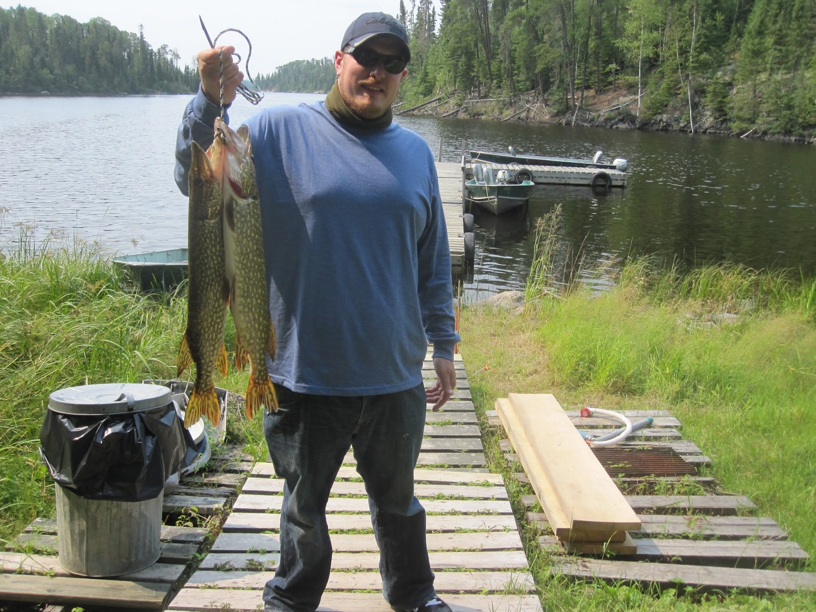 Perhaps the best fish story of the week was this “once in a lifetime” fishing double off of Parker Lake. These guys were fishing right close to the lodge and brought in a nice 22″ walleye – but as they were bringing it to the boat a 40″ northern clamped on! They quickly boated back to the dock where Travis helped them get some pictures of both fish and successfully release them both back into the water.