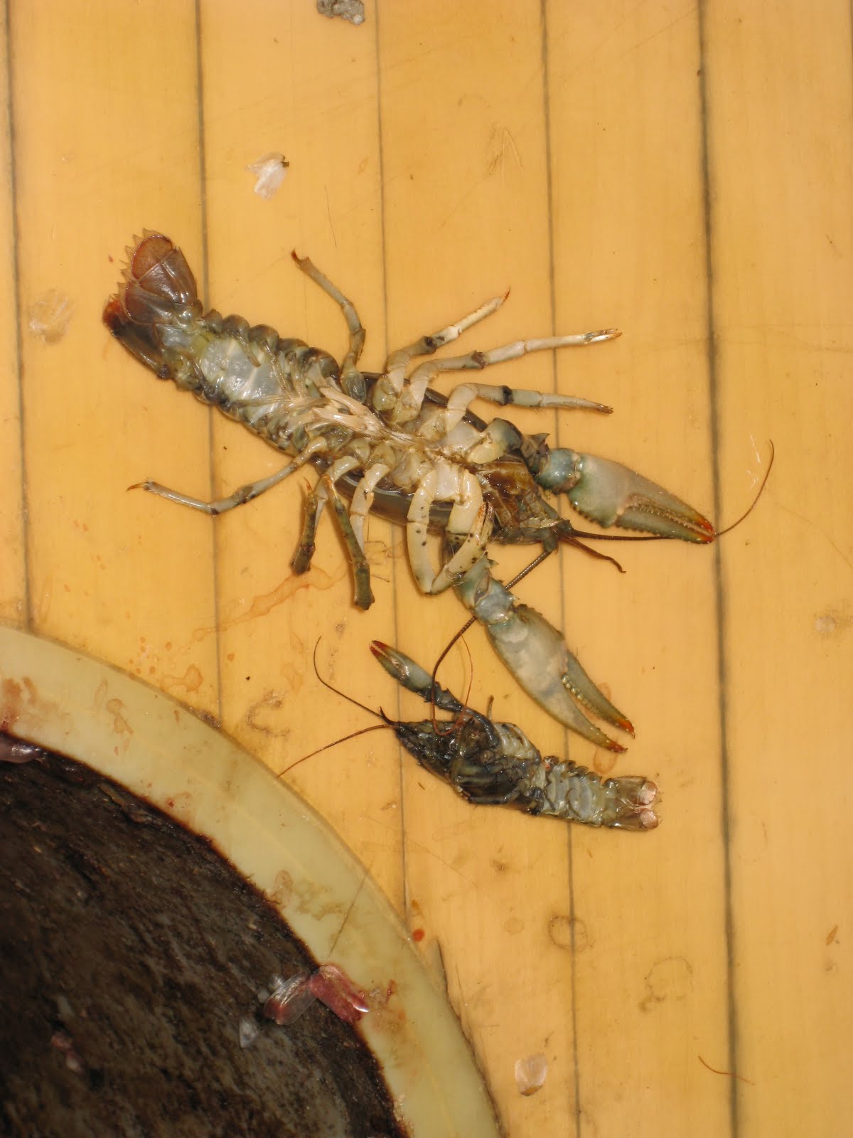 If you’re planning on chasing Northern Pike during your trip it might be a good idea to pack a crayfish lure or two. We’ve lost count of the number of crayfish we’ve found while cleaning Northerns this summer, but they seem to be a popular forage. The photo above shows two that were found a couple weeks ago. I had one buried deep in my tackle box, but I dusted it off and have had success with it.