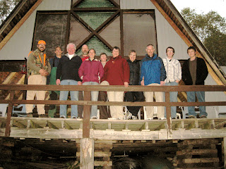 On the day we expected our guests it was fairly cool and cloudy, with wind gusts over 30 miles an hour.  Due to the wind, boat travel plans had changed for Lucy and she asked if we could come get them in our barge.  The barge is great for transporting large groups of people across the water.  It is also a WIND MAGNET.  But, alas, the brisket was in its 12th hour (literally) and there was no turning back.  Travis and his dad headed over to town to pick them up.  Apparently at the landing in town where we pick up guests Travis was battling wind as he was backing up and turning the barge around to head back to camp.  He missed another docked boat by inches.  INCHES!  Someone was extremely impressed and told him, “Man, you must really know your boat!”  I’m sure Travis was sweating bullets and thanking his lucky stars at his near miss.  Always an adventure, I tell you what.